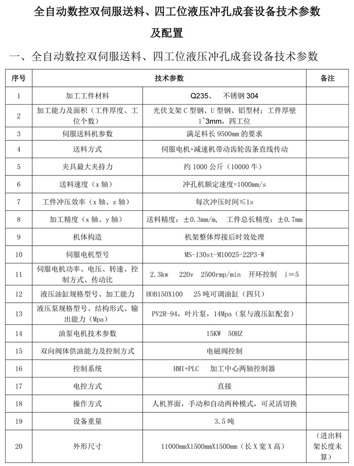 光伏支架双伺服送料四工位液压冲孔生产线