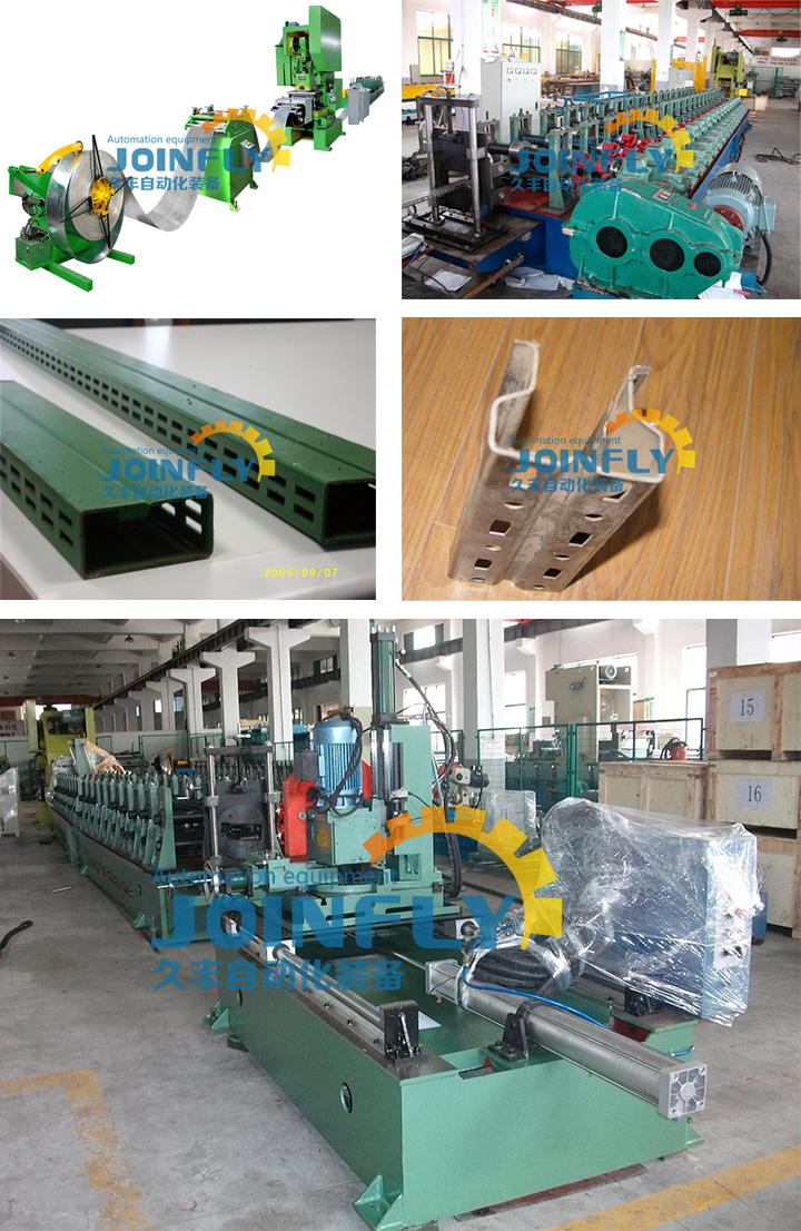 整条生产线由放料系统、冲孔系统、成型系统、切断系统、电控系统等部分组成。
