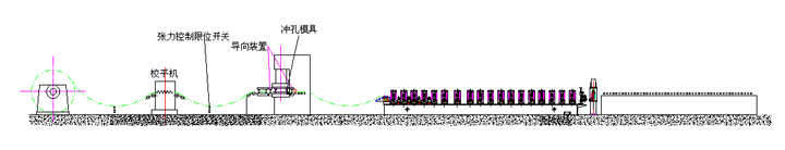 整条生产线由放料系统、冲孔系统、成型系统、切断系统、电控系统等部分组成。